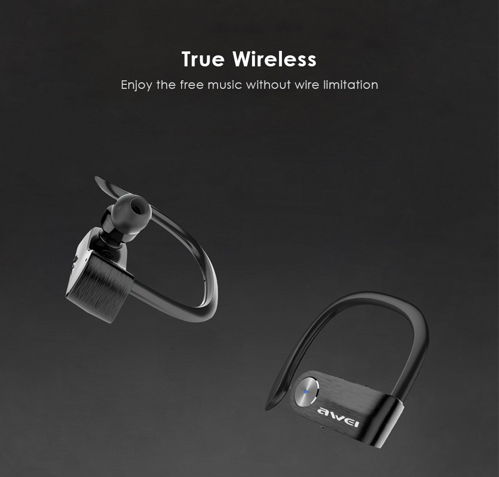 Awei t2 tws sports ear hook bluetooth waterproof wireless headphones mini separate stereo headphones black