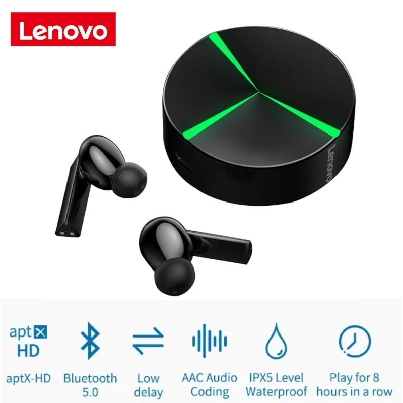 Original lenovo gm1 wireless bluetooth gaming headset tws earbuds ipx5 waterproof touch control with microphone black