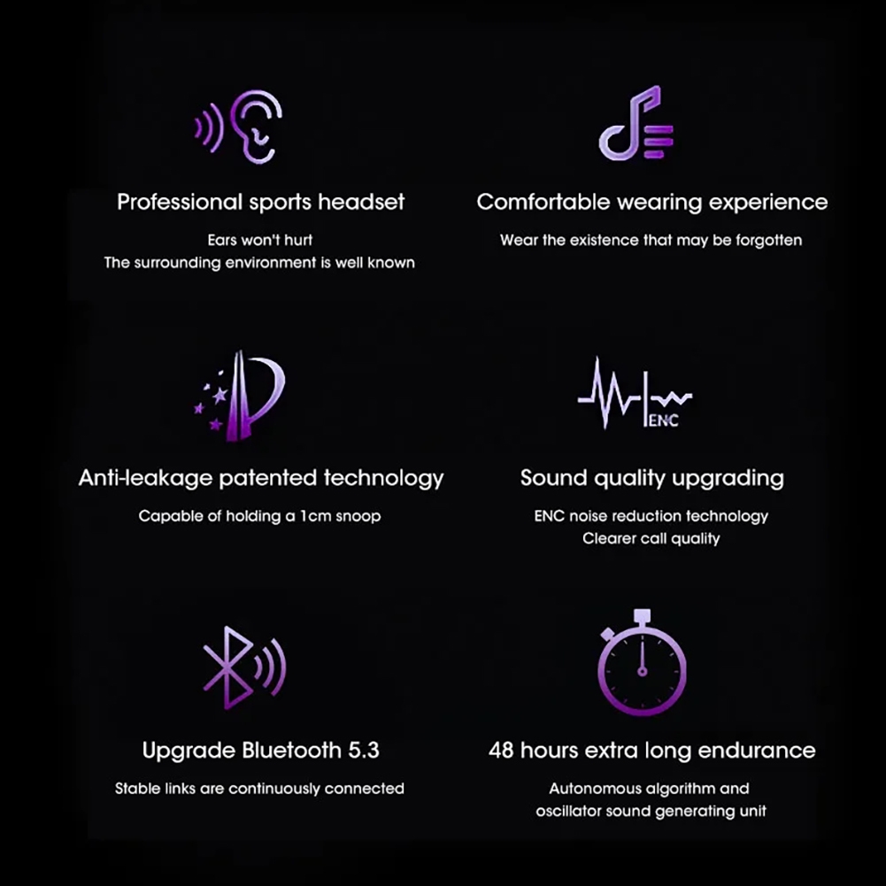 2. Stable transmission: This headset adopts 5.3 Bluetooth-compatible stable transmission technology, the connection is more stable, the sound quality is clearer, and you can feel more at ease when using it.