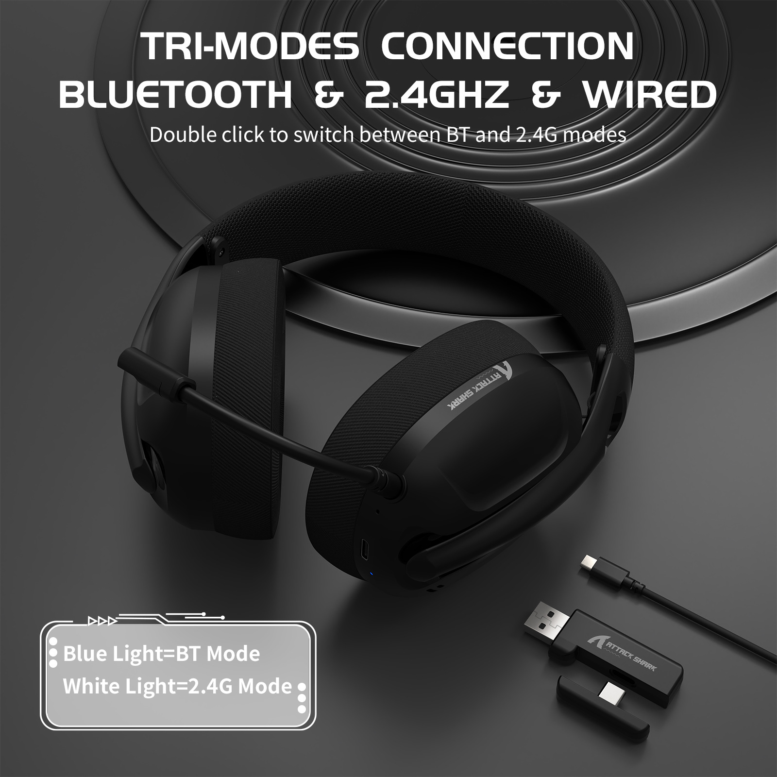 Color: Attack Shark L80PRO wireless tri-mode headset white, Attack Shark L80PRO wireless tri-mode headset black